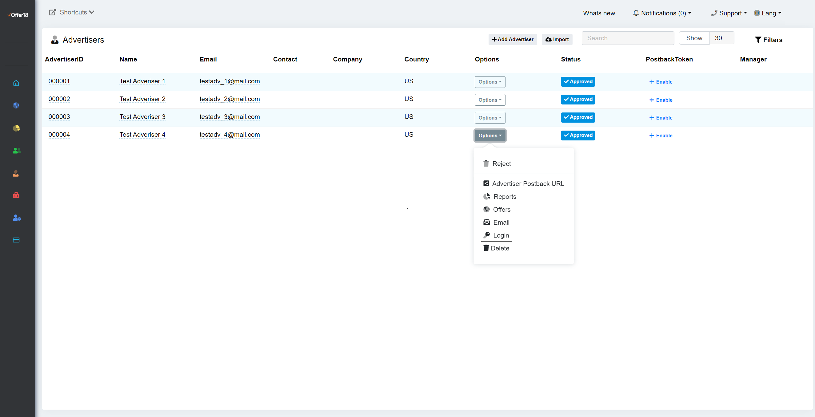 #### 1. Go to Advertisers **»** Advertisers&#x20;