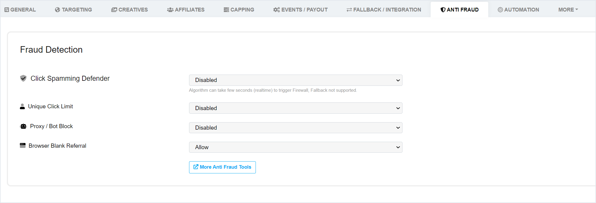 2. **Click on the Offer name to enter its configuration » Anti-Fraud Tab**