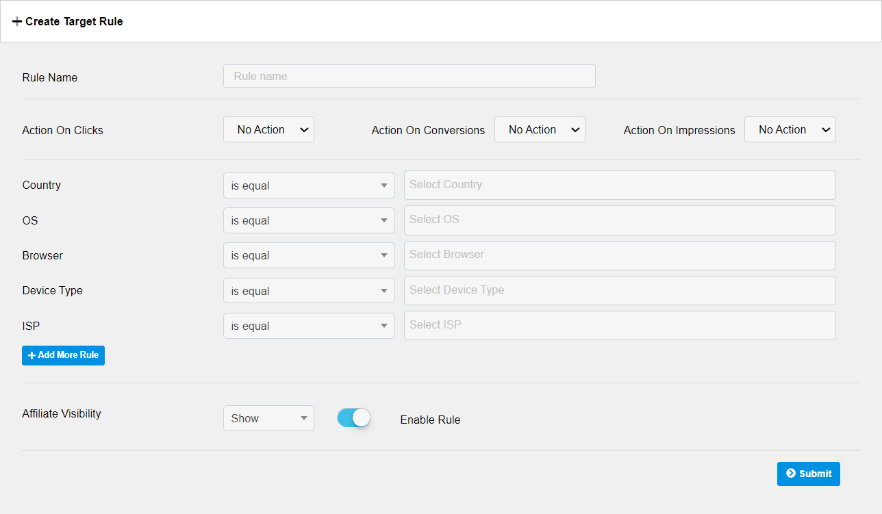 This feature lets users add targeting rules to their offers, helping them reach specific types of traffic. You can set different actions for clicks, impressions, and conversions. This means you can control how your offers are shown to different audiences and improve your campaign performance.