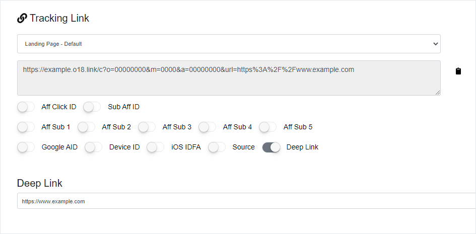 Deep Link deve ser habilitado no painel de administração. Se o Deep Link não estiver habilitado no Painel de Administração, a opção de habilitar o Deep Link no Painel do Afiliado ficará indisponível.