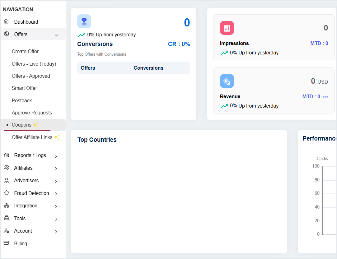 O rastreamento de cupons no Offer18 permite monitorar quão eficazes são seus códigos de cupom em diferentes esforços de marketing. Você pode alocar vários tipos de códigos para ofertas diferentes, permitindo rastrear o uso dos códigos e identificar quais ofertas geram mais conversões.