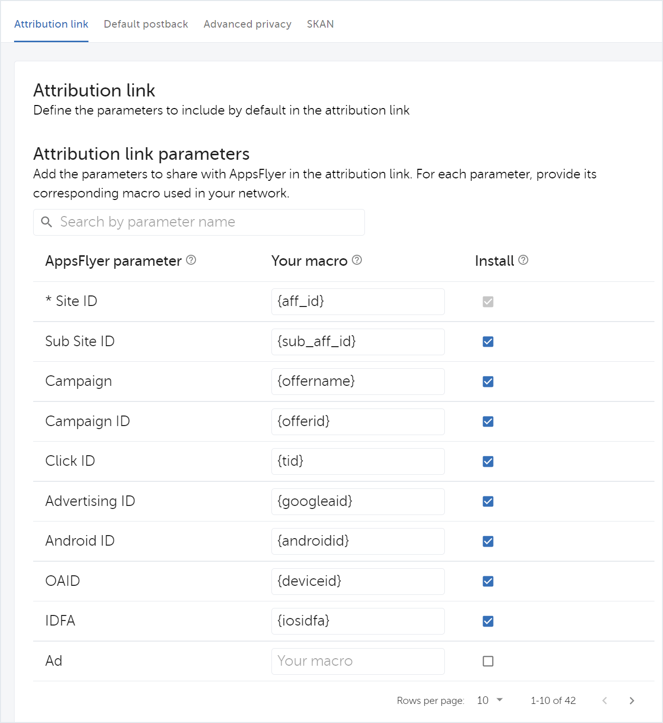 https://app.appsflyer.com/com.appsflyer.app?af_sub_siteid={sub_aff_id}&pid=partner_int&af_siteid={aff_id}&af_click_lookback=30d&clickid={tid}&c={offername}&af_c_id={offerid}&advertising_id={googleaid}&android_id={androidid}&idfa={iosidfa}&oaid={deviceid}